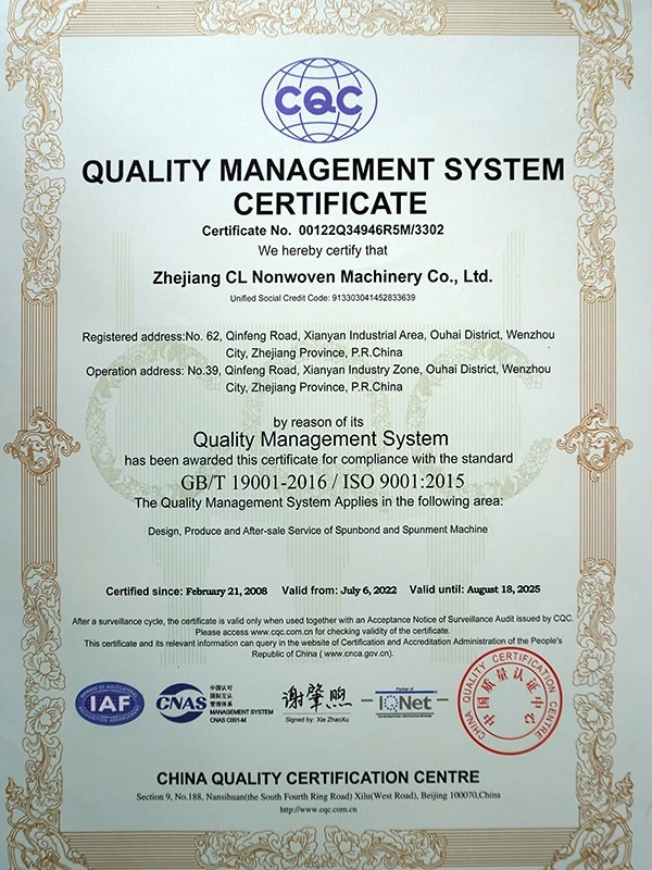 我司深耕非织造机械制造领域30余年,致力于打造高标准、技术领先的非织造机械成套设备解决方案,确保生产线性能卓越,质量可靠。
